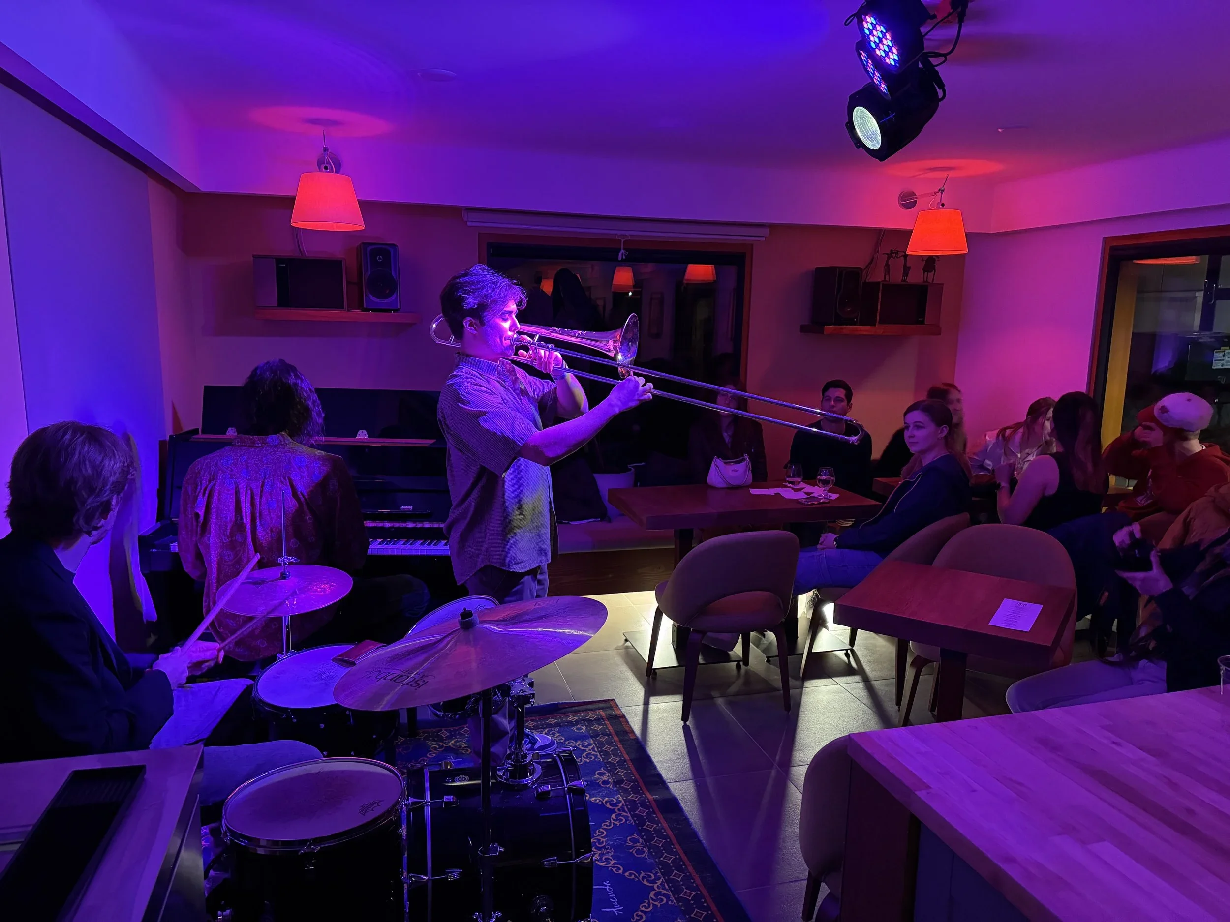 We prioritize jazz and folk music broadly to compliment our cozy space